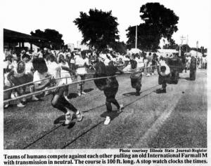 The new sport has fast become the most popular event at the yearly Sweetcorn Festival held in July each year in Chatham, Ill. The brainchild of the Chatham JC's, human tractor pulls have been staged for the past four years. Mark Workman, of the JC chapter, says the human tractor pull is a big crowd pleaser that has added to the attendance of the annual festival.