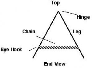Larry Evans, Ty Ty, Ga.: "Here's a handy way to make height-adjustable, fold-flat sawhorses. I put a hinge at the top of one set of legs. A length of chain runs between the two sets of legs at the bottom. There's an eye hook on one side that makes it easy to change the length of the chain. Shortening up the length of the chain makes the sawhorse taller. When you're all done, they fold up flat so they don't take up a lot of room."