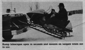 Manufactured by N.W. Clayton Co. Ltd., Guelph, Ont., the spring steel rod and tubular steel section ramp extends out to 60 in. When closed, it's 51-in. wide, 21-in. tall and 2¢-in. On the tailgate it's out of the way and takes up little cargo room.