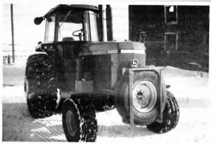 A small steel box that mounts on the right side of the tractor above the front axle carries wood blocks. The jack, handle and wheel wrench are carried inside the tractor.