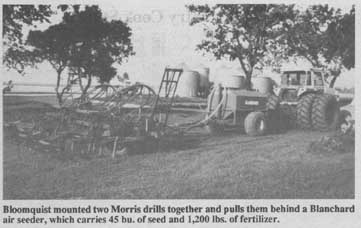 "I've used it for six years and have been pleased with its reliability and simplicity," says Bloomquist. "I've looked at several new air seeders and can't see that they have any advantages over mine. I paid just a fraction of what it would cost for a conventional 30-ft. air seeder.