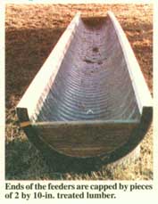The ends of the feeders are capped by pieces of 2 by 10-in. treated lumber that are bolted in place.