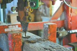 “We got tired of pulling nails pretty fast,” says Yoder. “I told a local machinist what I wanted, and he built it. It cuts our time by a third.”