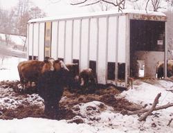 FARM SHOW reader John King, Chicora, Penn., recently sent us a few pictures of a hay feeder his neighbor, Ken Teckman, made from a used 28 ft. box trailer to keep 5 round bales dry. It also has very little waste.