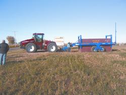 Randy Doepker, company vice president, says the biggest challenge was coming up with the right wheels. "We had to find something that would meet that would handle the load yet with enough floatation to minimize impact on the fields."
