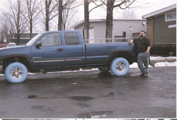 People either love or hate the colored tires on his pickup, says inventor Russ Preischel, Hamburg, N.Y., who came up with the idea as a teenager and has worked on the patent-pending idea for years. He's getting geared up to offer them to the public.