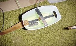 The mouse enters the trap on the cardboard "ramp" and then follows the grounded strap to the bait. As it reaches for the bait, the mouse contacts the screen, gets electrocuted, and falls into the water.