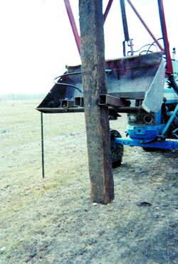 Roger Holcomb, Mentor, Minn., needed a better fence around his buffalo herd. He decided to build one out of railroad ties, despite the fact that he was recuperating from hernia surgery. He succeeded, thanks to a bucket-mounted post handler he put together in his shop.