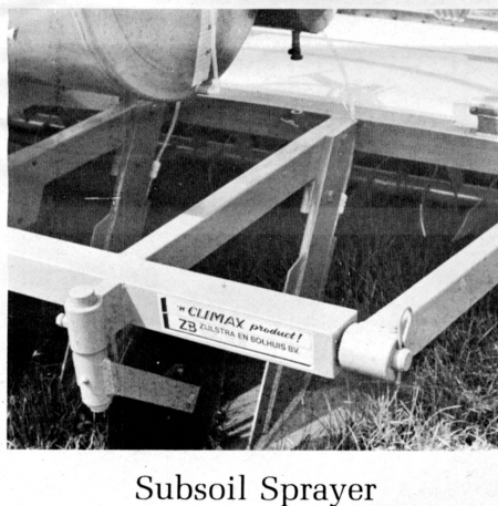 Accurate incorporation into the soil of pest control chemicals can be done in a single, easy operation with the new Climax Subsoil Sprayer, says the manufacturer. Originally designed for control of root eel worms that damage potatoes, tomatoes, strawberries, beets, bulb crops, etc., the subsoil sprayer works the soil, injects and incorporates chemical and seals the surface.