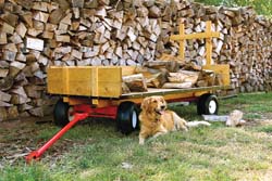 The 44 by 84-in. hemlock wagon bed is 16 in. high on a heavy-duty axle and powdered-coated steel frame that can carry up to 2,000 lbs. The wagon has 4-ply tires, a drawbar hitch and a rear hitch. The wooden deck is sealed with a UV-resistant all weather sealer.